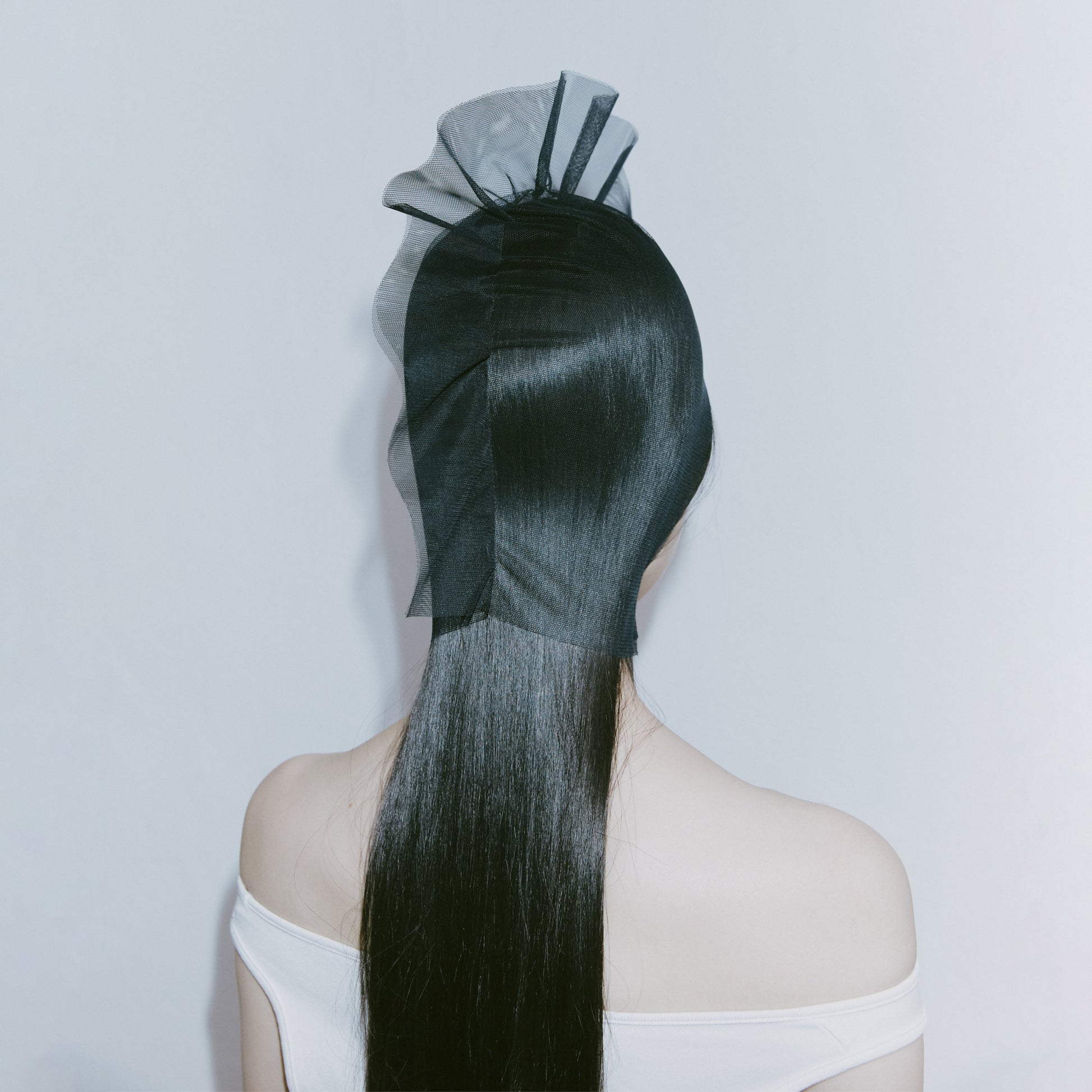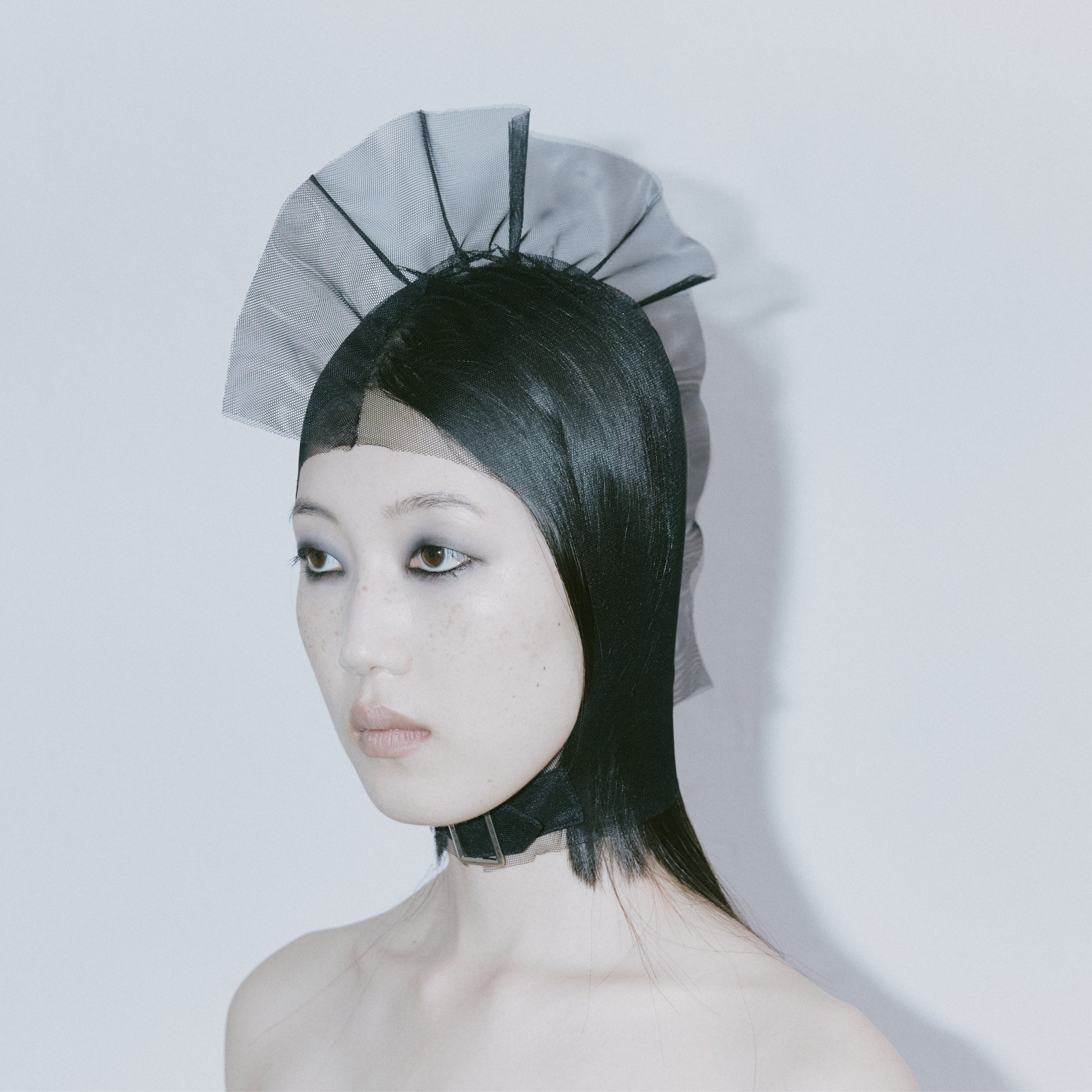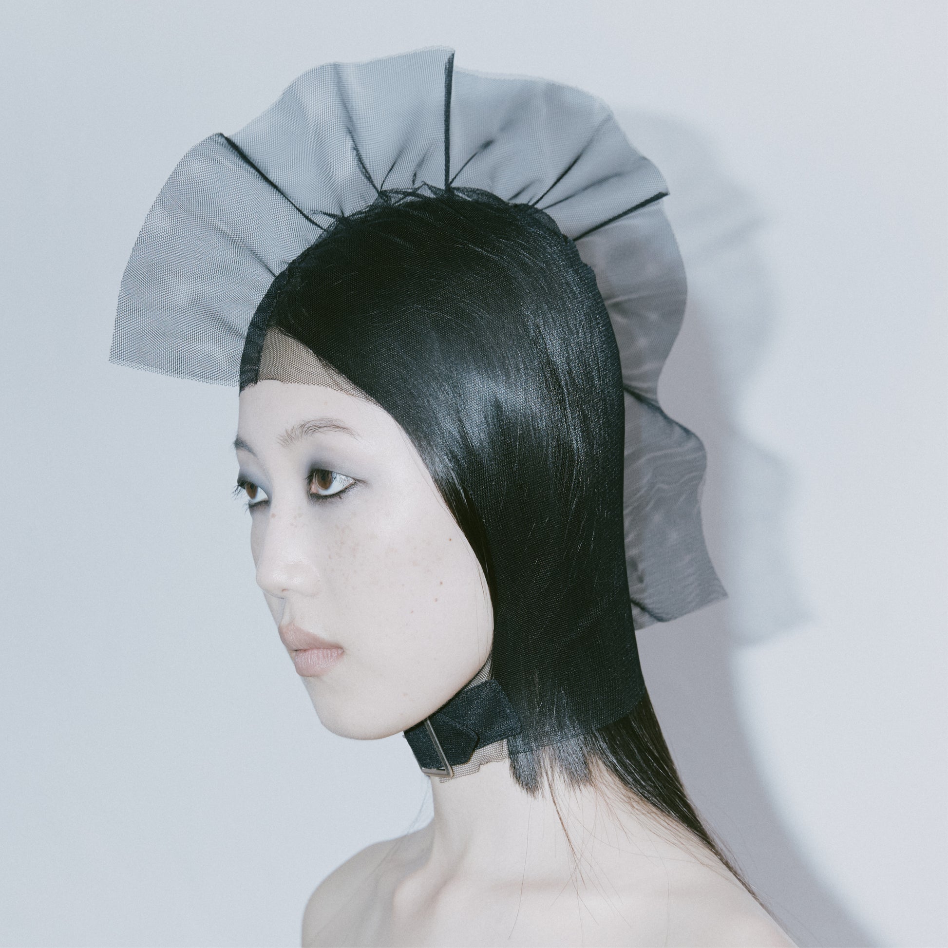 Vanessa Baernthol tulle balaclava with wide ruche made from premium black tulle fabric.
