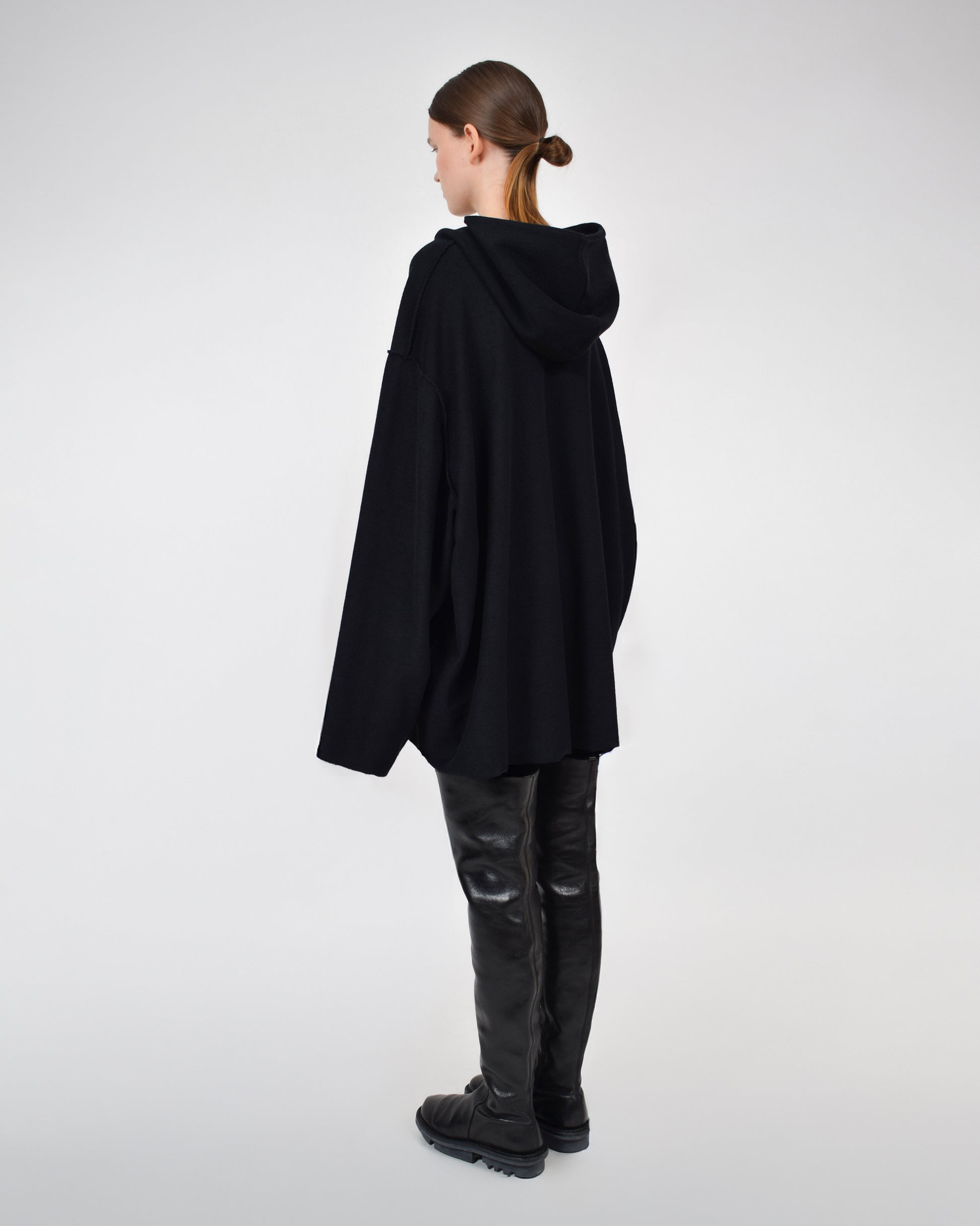 Vanessa Baernthol inverted hoody, signature fit from the FW25 Berlin Fashion Week runway, made from premium black french terry fabric. Designed inside-out to showcase the soft loopback texture typically reserved for the interior.