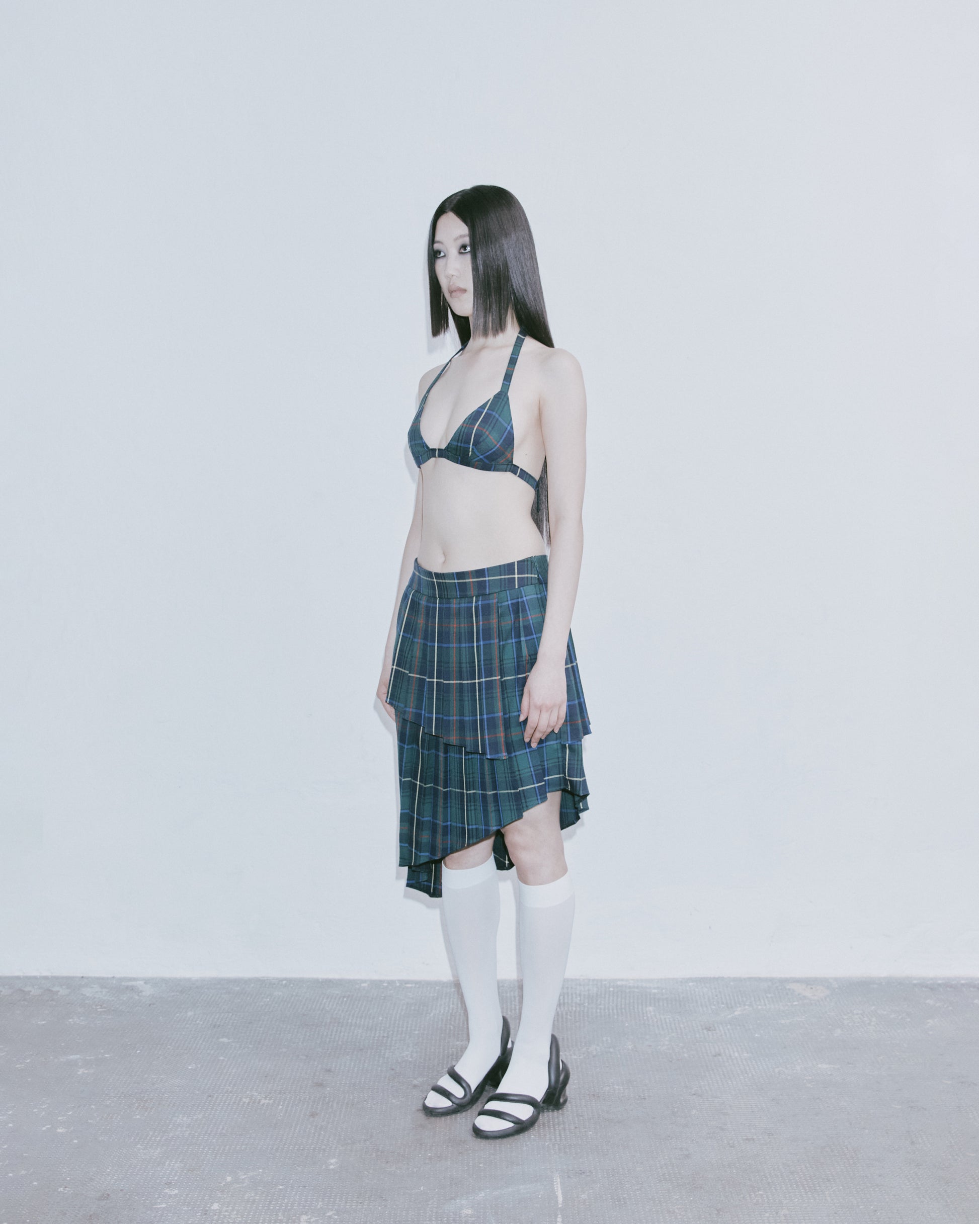Vanessa Baernthol bikini top from premium glen check fabric.